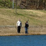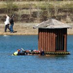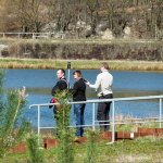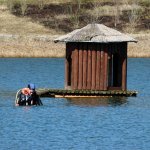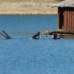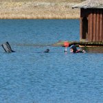 Im ersten Anlauf wurden die Käfige mit Bojen markiert und das Boot von zwei Personen mit den Brunnenhölzern beladen. Danach wurde das Boot auf den See gezogen und von zwei Tauchern entladen, während ein Taucher im Käfig stand/hockte, die Hölzer von oben entgegennahm und in den Käfig einsortierte.